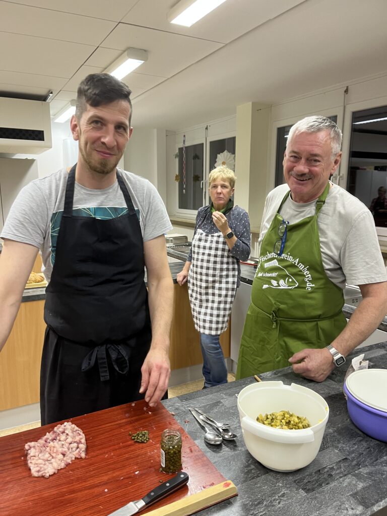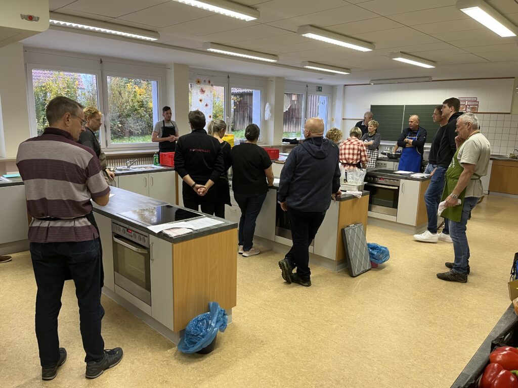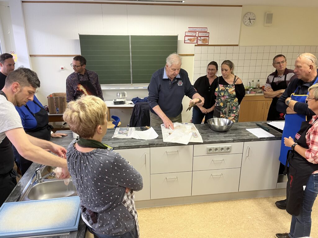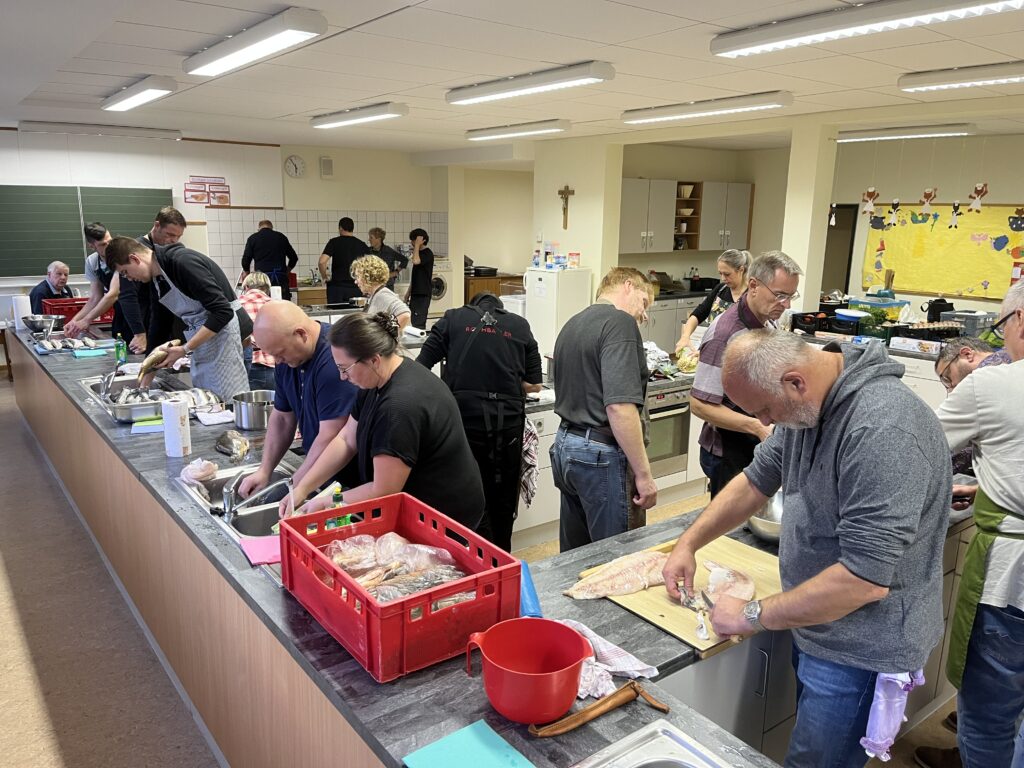 Am 24. und 25.10.2025 veranstaltete der Fischerei-Verein Amberg 1893 e.V. unter der Leitung der Chefköche Mathias Kubasch und Wolfgang Fuchs sowie einem Team von insgesamt sechs Sous-Chefs einen Fischkochkurs in der Schulküche der Grundschule Illschwang. 14 Teilnehmer/innen aus der Stadt Amberg und dem Landkreis Amberg-Sulzbach sowie aus dem restlichen Bayern, aus Hessen und aus Sachsen nahmen an dem Kurs zur kulinarischen Verwertung heimischer Fischarten, wie Karpfen, Forelle, Hecht, Zander und Weißfischen, teil.