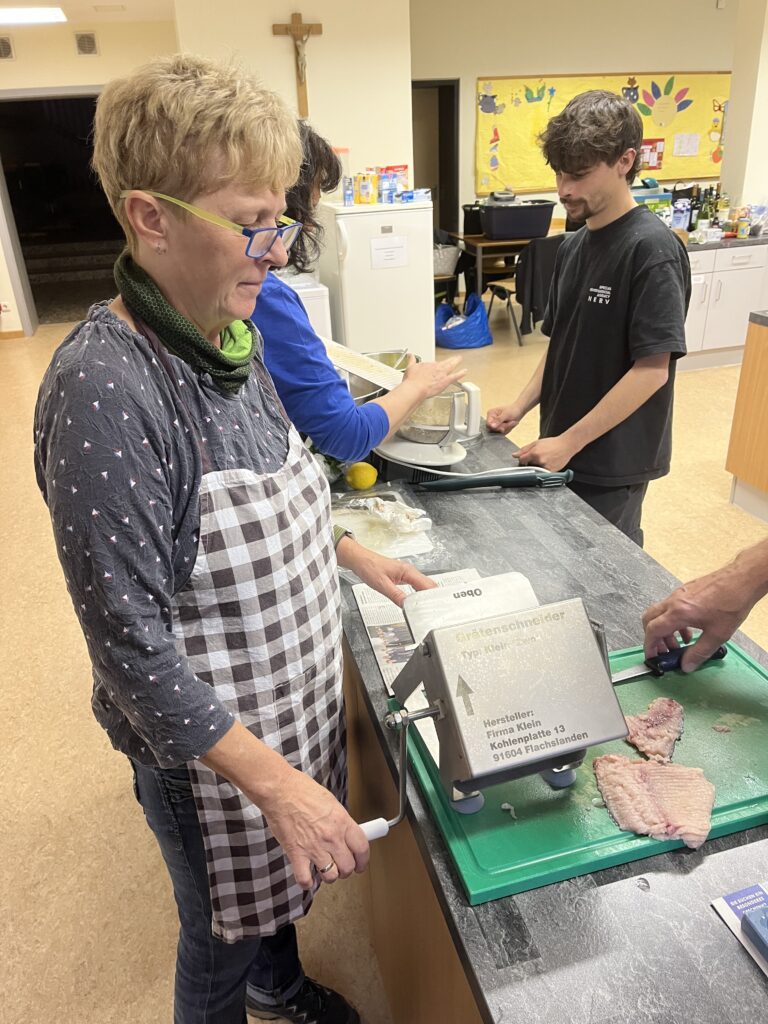 Unter fachkundiger Anleitung lernten die Teilnehmer/innen das Ausnehmen, Filetieren, Zerlegen und Verarbeiten von heimischen Fried- und Raubfischen. Den gesamten Freitagabend wurden die Fische und die Fischgerichte so für die Zubereitung am kommenden Tag vorbereitet.
