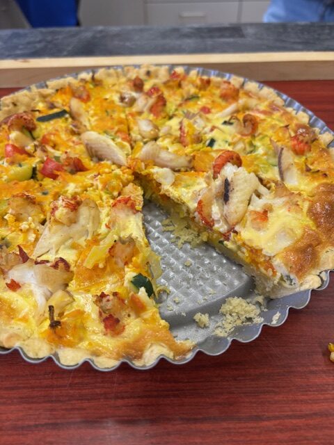 Am Samstagvormittag wurde schließlich gekocht und geräuchert. Neben heimischen Fischarten kamen auch für die Oberpfalz eher untypische bzw. exotische Spezies in den Kochtopf, zum Beispiel invasive Signalkrebse aus der Vils. Das Flusskrebsfleisch war unter anderem auch eine schmackhafte Zutat in der Quiche mit Räucherfisch und gedünstetem Gemüse.