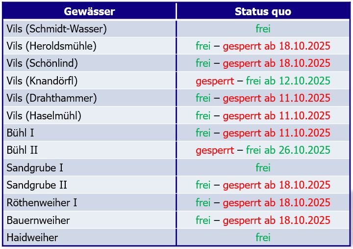Termin: Sonntag, 16.11.2025 Uhrzeit: 9-12 Uhr Treffpunkt und Ausgabe der Sondererlaubnis: 8:45 Uhr - Parkdeck Kräuterwiese Zielfisch: Aitel Keine Stückzahlbegrenzung und Rücksetzverbot für Zielfisch! Teilnehmer/innen: aktive Vereinsmitglieder und Jugendgruppe mit gültigem Staatlichen Fischereischein und Fischerei-Erlaubnisschein 2025...