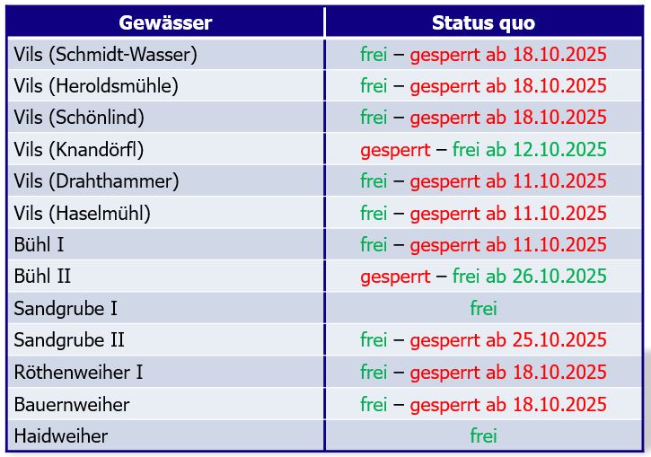 Änderungen vorbehalten! Freie Gewässer nur zur Befischung frei, sofern Gewässer "eisfrei"!!! "eisfrei":= mindestens ¾ der Gewässeroberfläche frei von Eis...